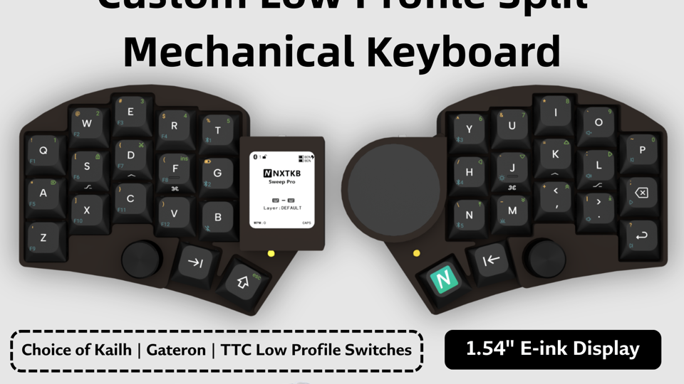 电子墨水屏状态显示、集成 Cirque 触控板、双旋转编码器、4000mAh 超长续航——一切尽在超薄无线分体设计中。
